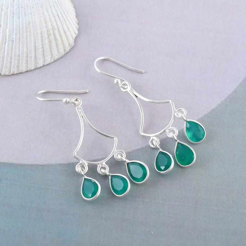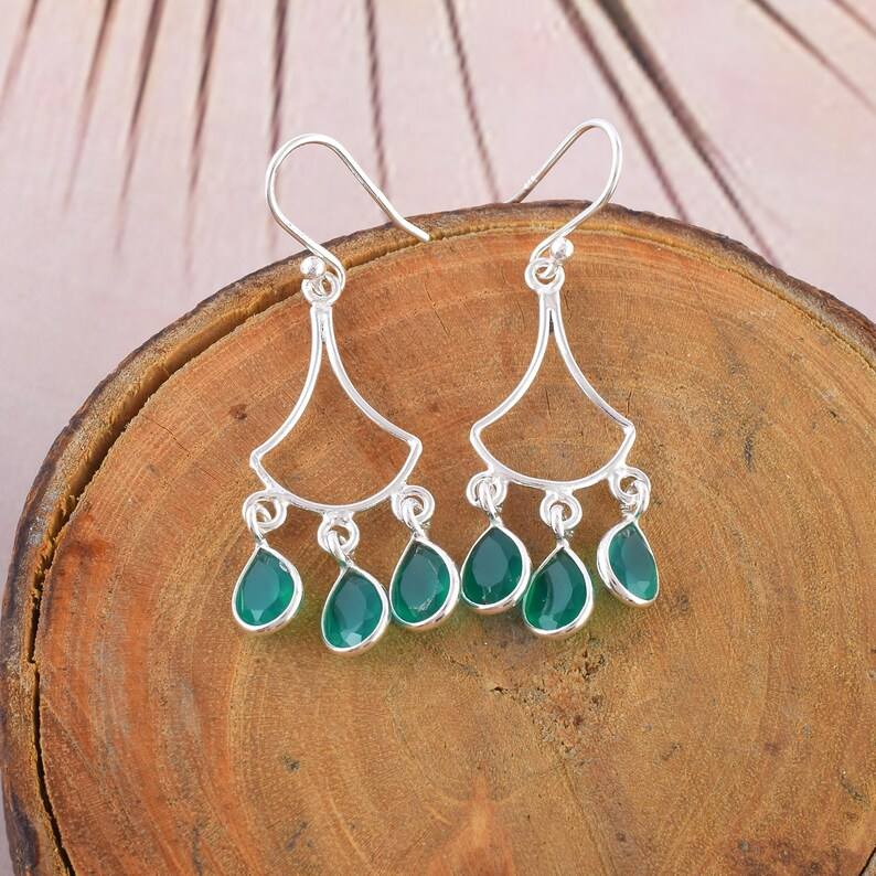 Pendientes de ónix verde, joyería de piedras preciosas de Plata de Ley 925, regalo del Día de la madre, pendientes de piedra de nacimiento de mayo, pendientes de plata hechos a mano