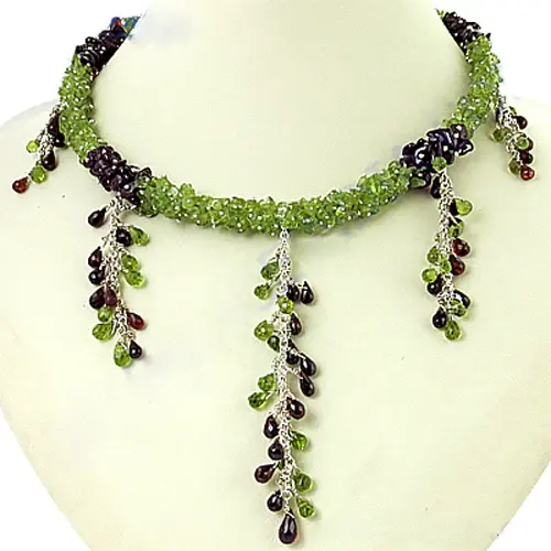 Collares:Collar de perlas de peridoto verde y granate para mujer | Joyería Única
