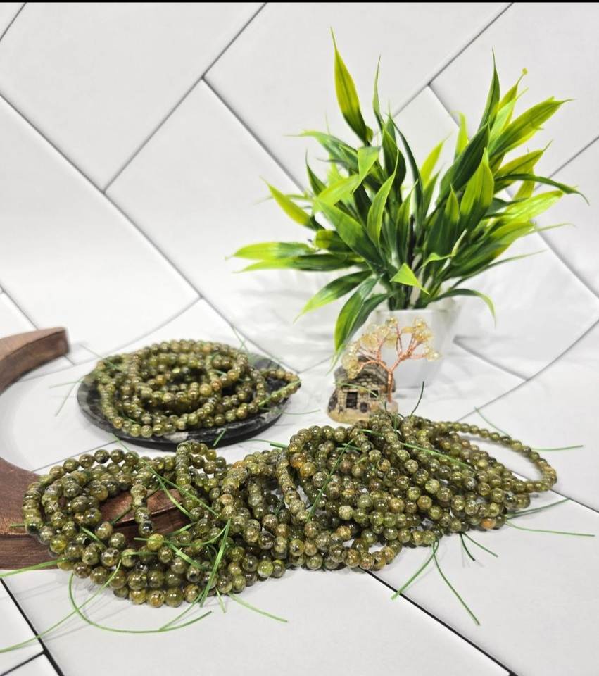 Pulsera curativa de cuentas de piedras preciosas naturales de peridoto verde de la India