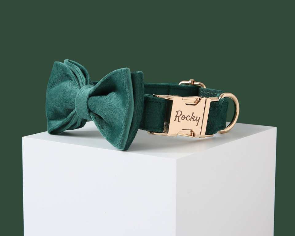 Conjunto de collar y correa de perro personalizado verde, estampado de poliéster de terciopelo grueso, decoración de remaches, regalo para amantes de los perros