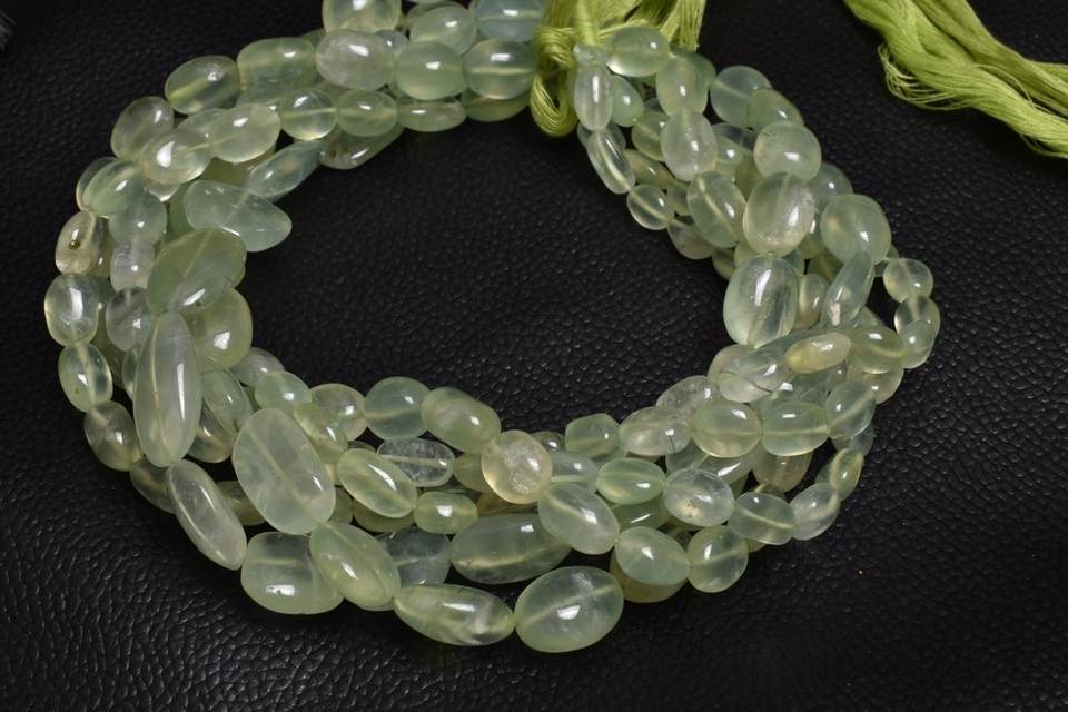 Material:Natural verde Prehnite suave caída forma cuentas