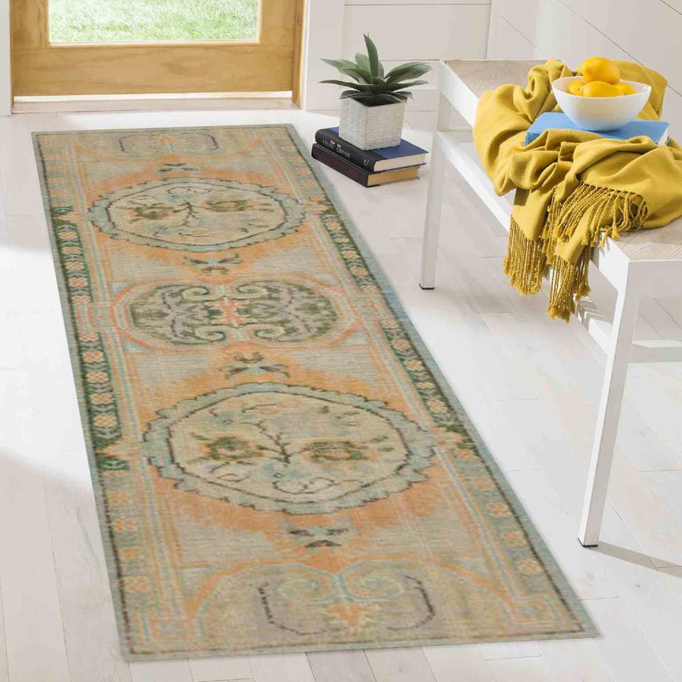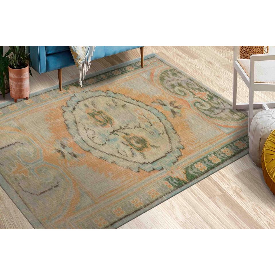 Alfombra Verde Estampada, Diseño Floral Suave, Estilo Bohemio Turco, Alfombra Delgada No Tejida