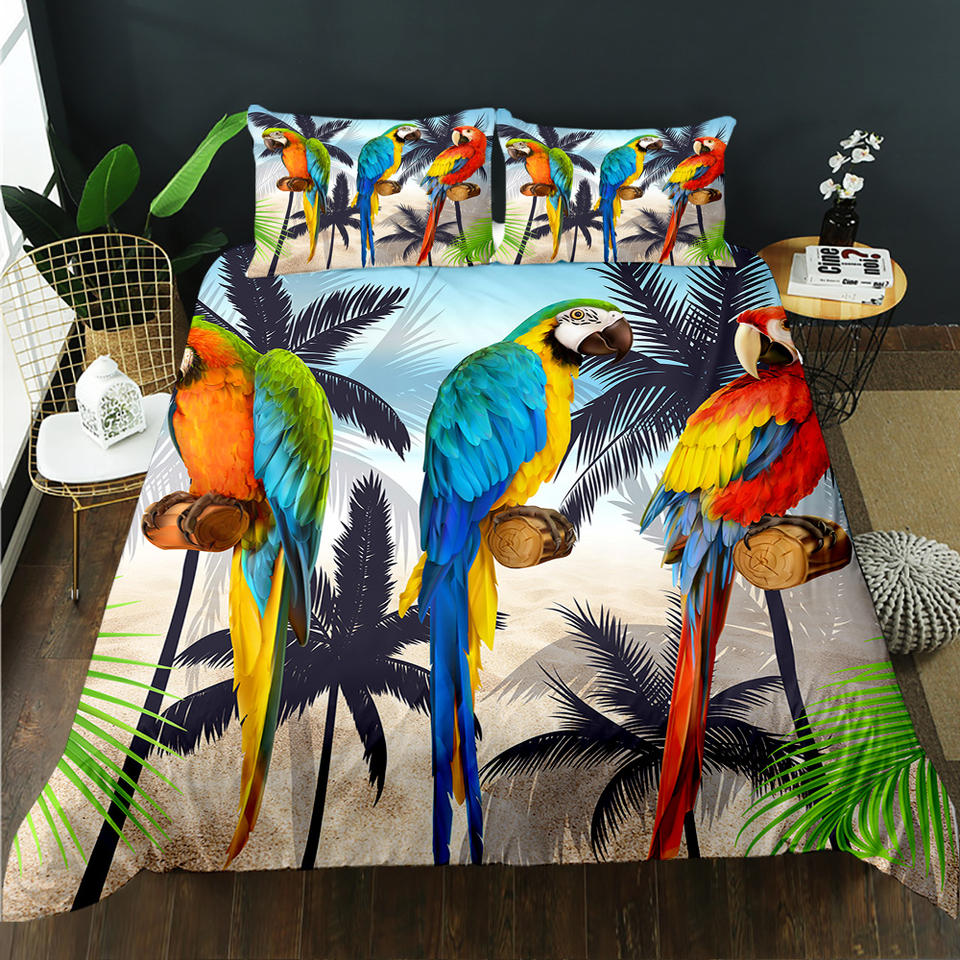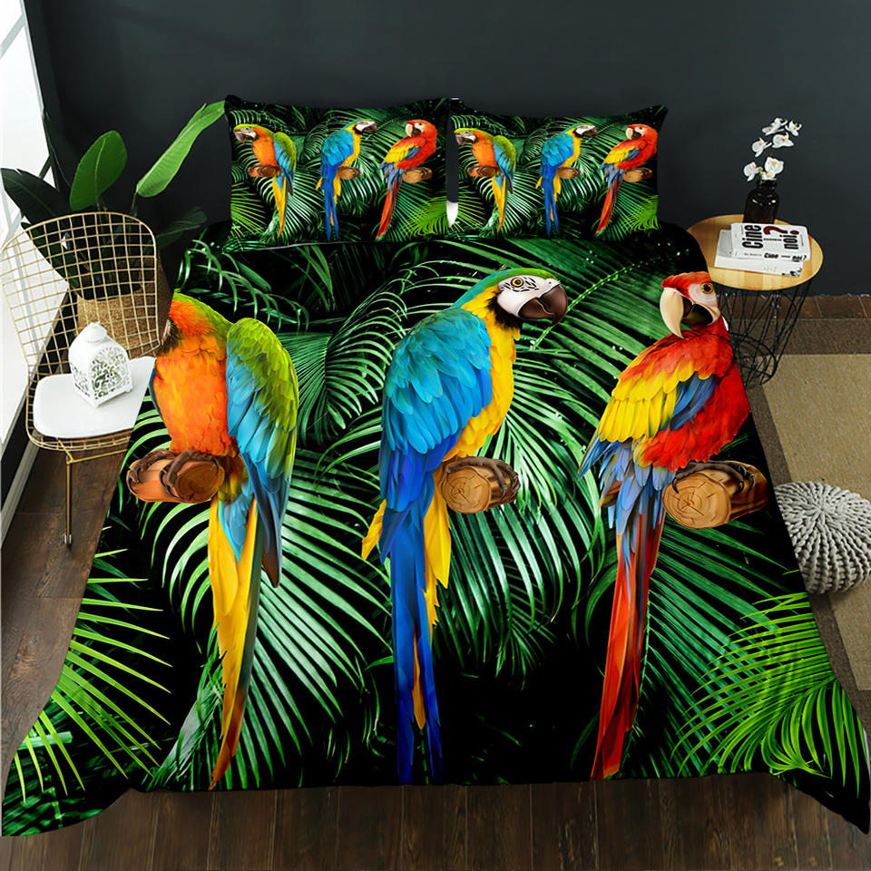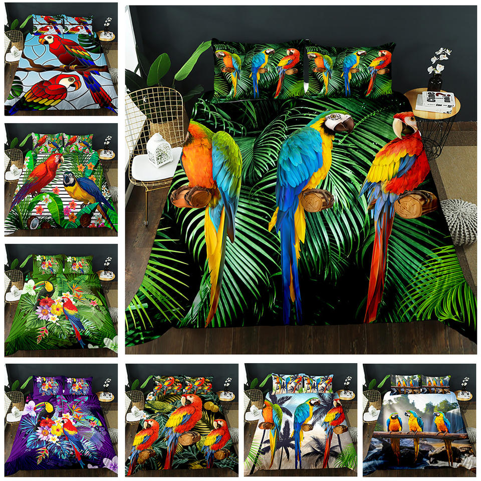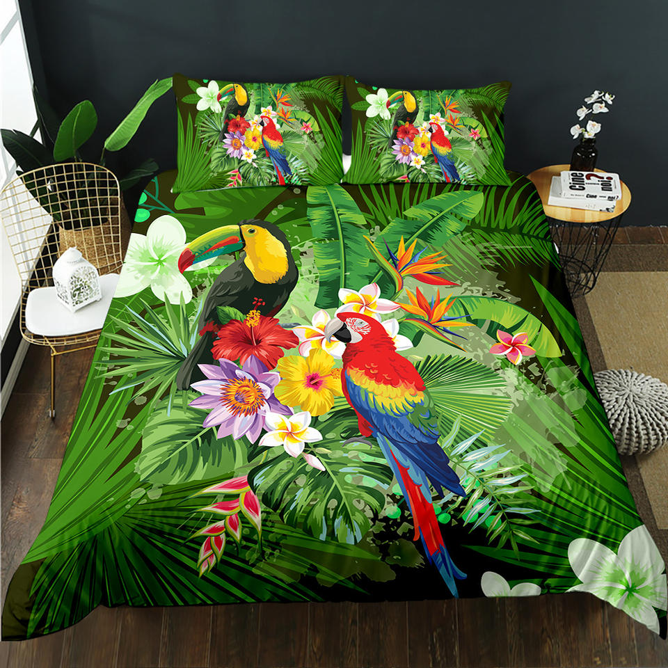 Juego de Ropa de Cama con Funda Nórdica de Poliéster con Diseño de Guacamayos de la Selva Tropical Verde, Suave y Cómodo