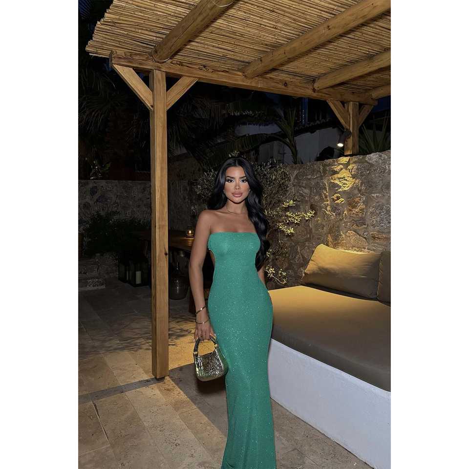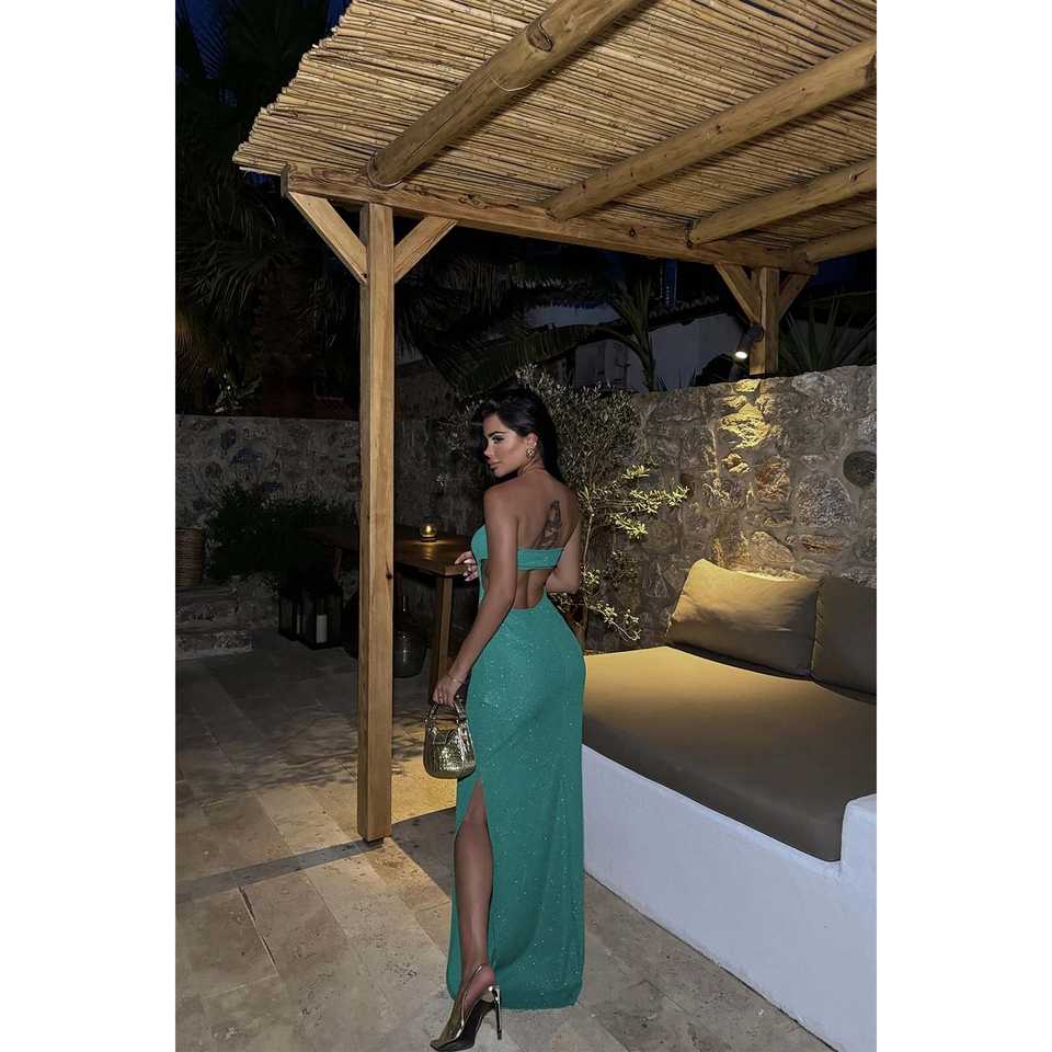 Vestido de Noche Verde Satinado con Lentejuelas en la Espalda, Silueta A-Line para Maternidad, Escote Corazón, Largo hasta el Suelo, con Abertura y Bordados, Ideal para Fiestas