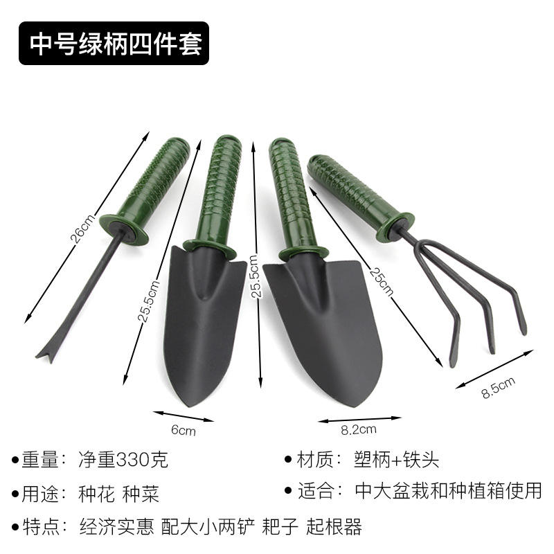 Green Smooth Garden Tool Set 4 Pc Plastic Handle Shovel Fork Rake Trowel For Courtyard Balcony Gardening