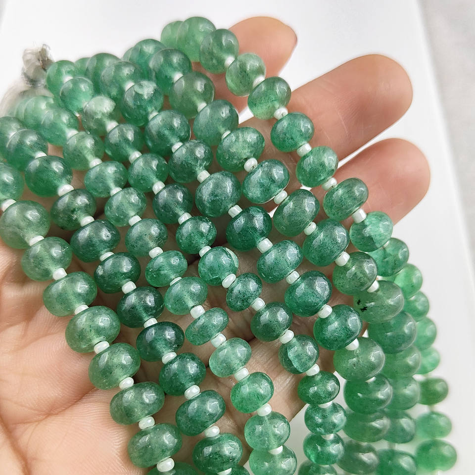 Cuentas Redondas de Cuarzo Verde Fresa de 6-7 mm, Cuentas Lisas para Hacer Joyas, 20-22 Cuentas en un Hilo de 8 Pulgadas
