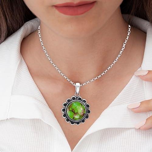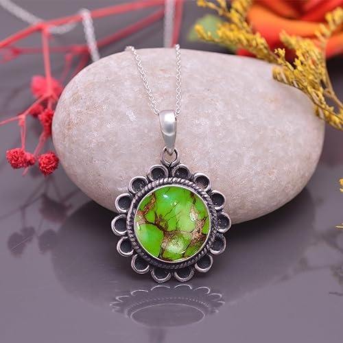 Colgante de joyería fina hecha a mano con piedras preciosas naturales de turquesa verde, colgante de Plata de Ley 925 con sello 925, joyería colgante de plata