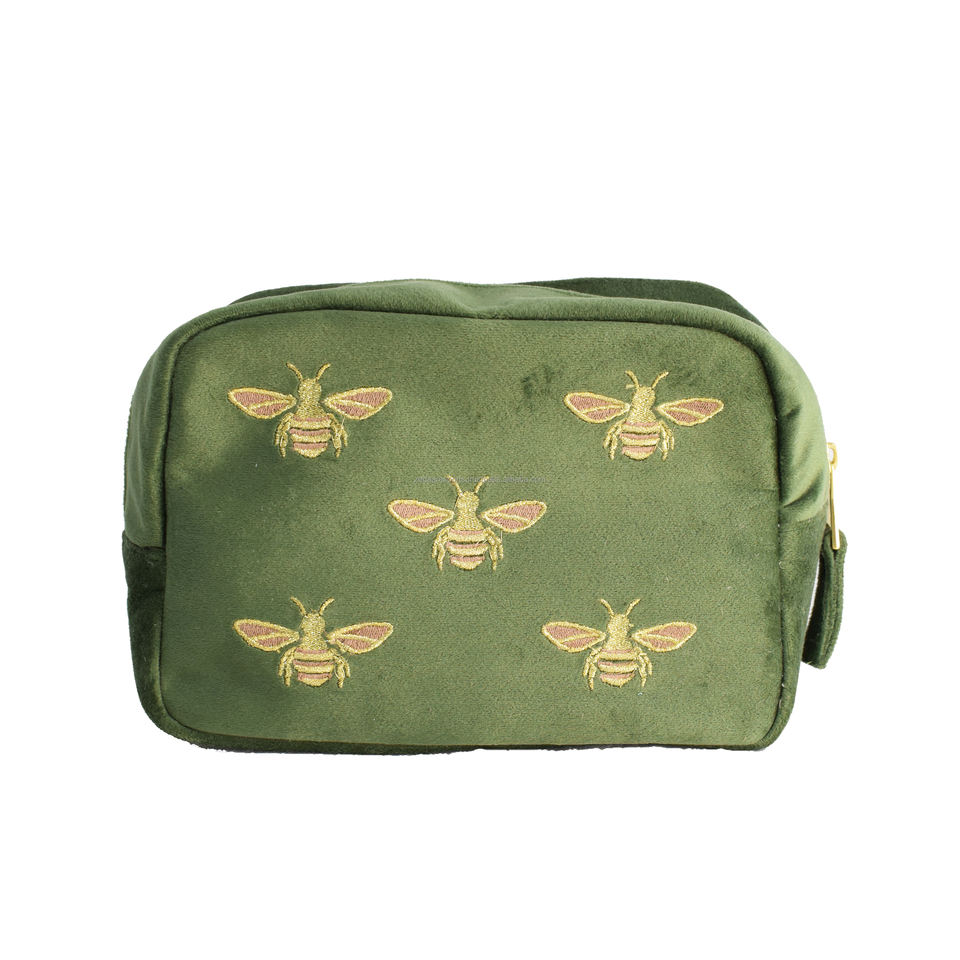 Nombre del producto:Bolso de terciopelo verde con diseño de bordado de abeja