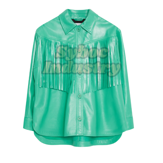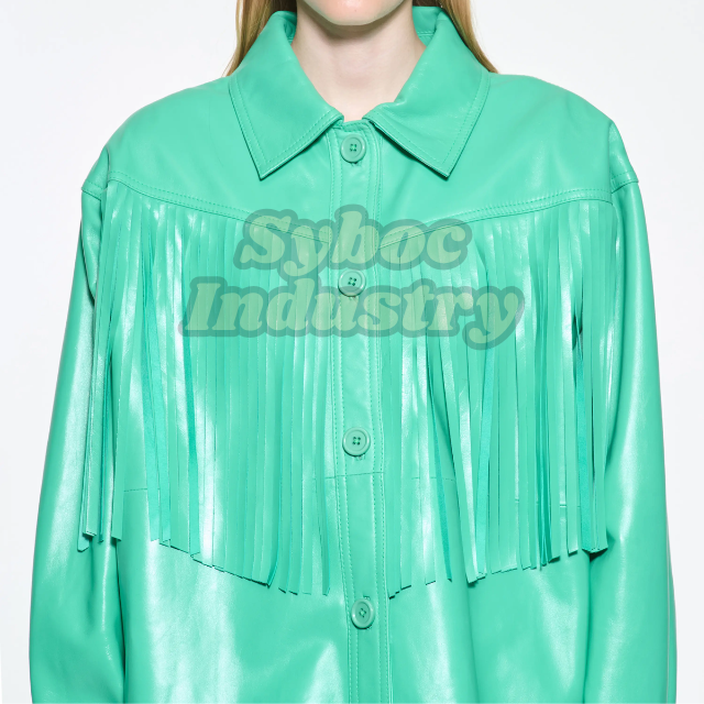 Chaqueta de cuero con flecos occidentales verdes para mujer, chaqueta de cuero con flecos Vintage de cuero de oveja genuino para fiestas temáticas de vaquera