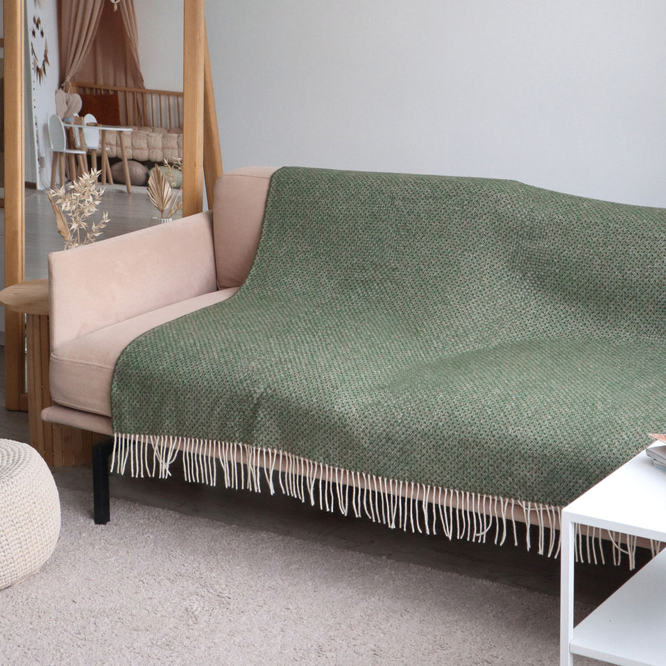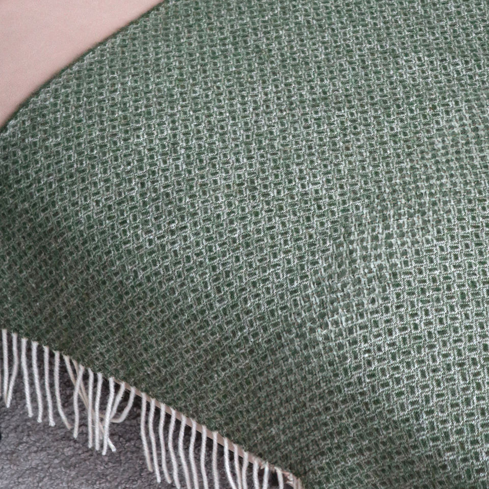 Verde y blanco 140x200 cm Tweed Merino Lana Manta 80% Merino 20% Nylon Tejido Técnica Regalo-En caja