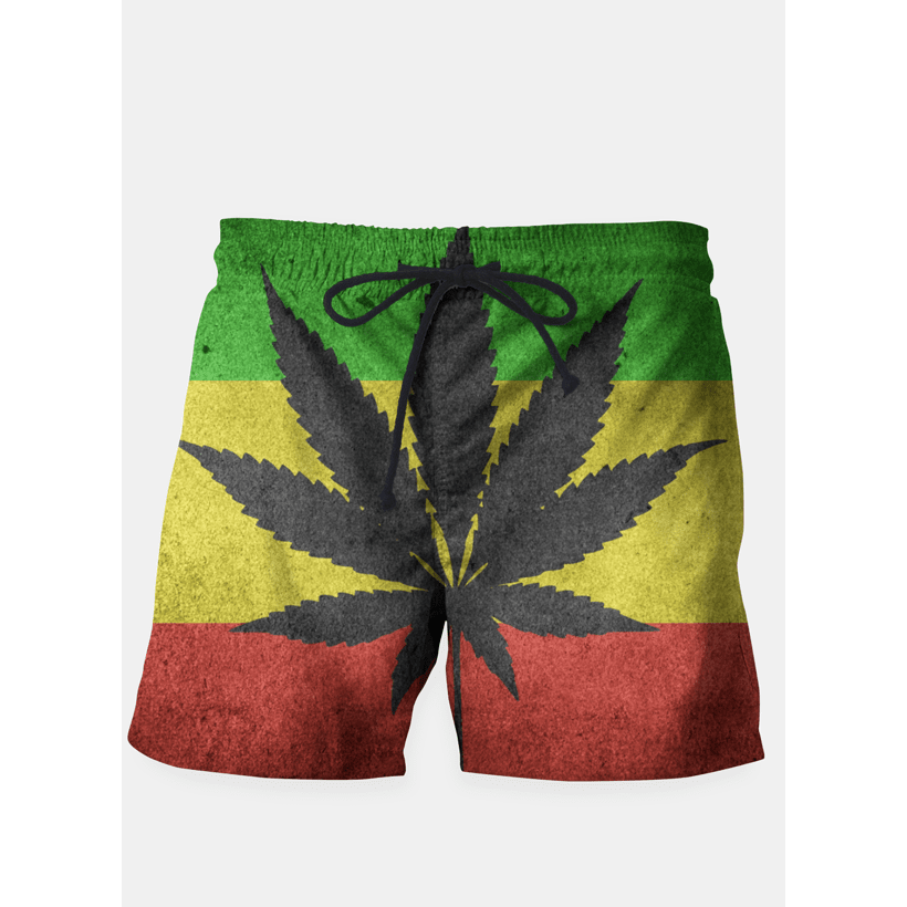 Pantalones Cortos con Estampado de Bandera de Marihuana en Colores Verde, Amarillo y Rojo