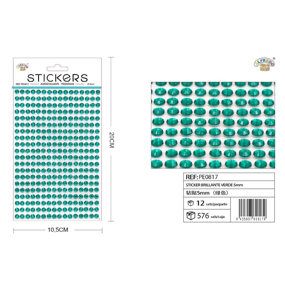 Pegatinas verdes brillantes 5mm 10,5x20cm para manualidades