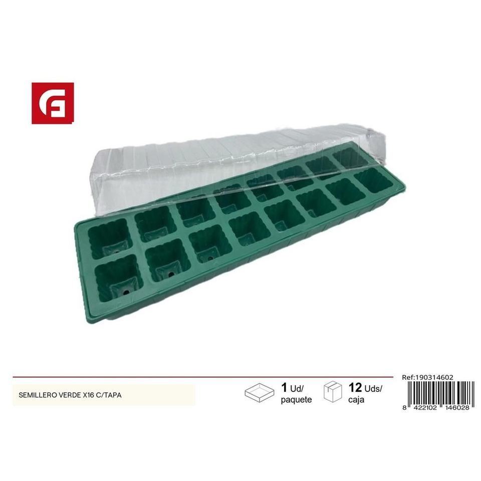 Bandeja de semillas verde con tapa x16-Accesorio de jardinería