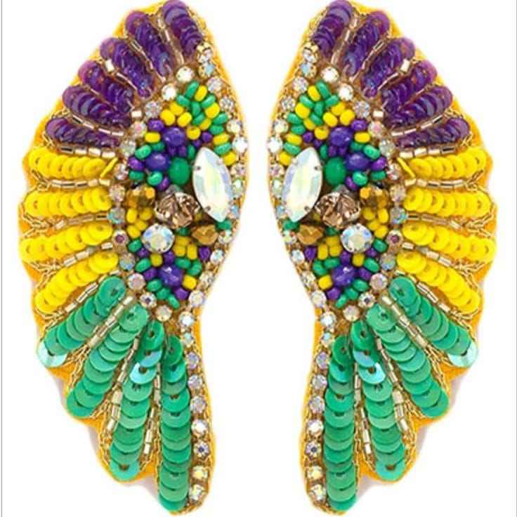 Pendientes occidentales con cuentas americanas europeas, pendientes de tuerca de diseño amarillo verde clásico, acabado dorado, conjunto de boda bohemio al por mayor