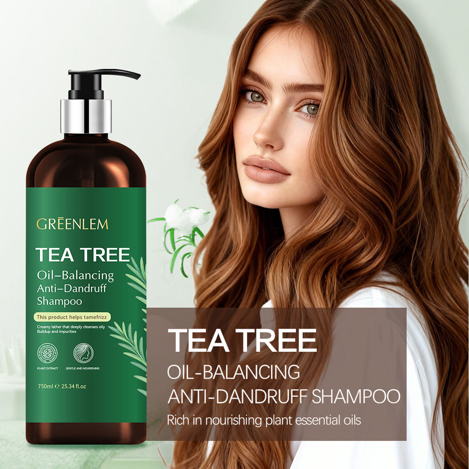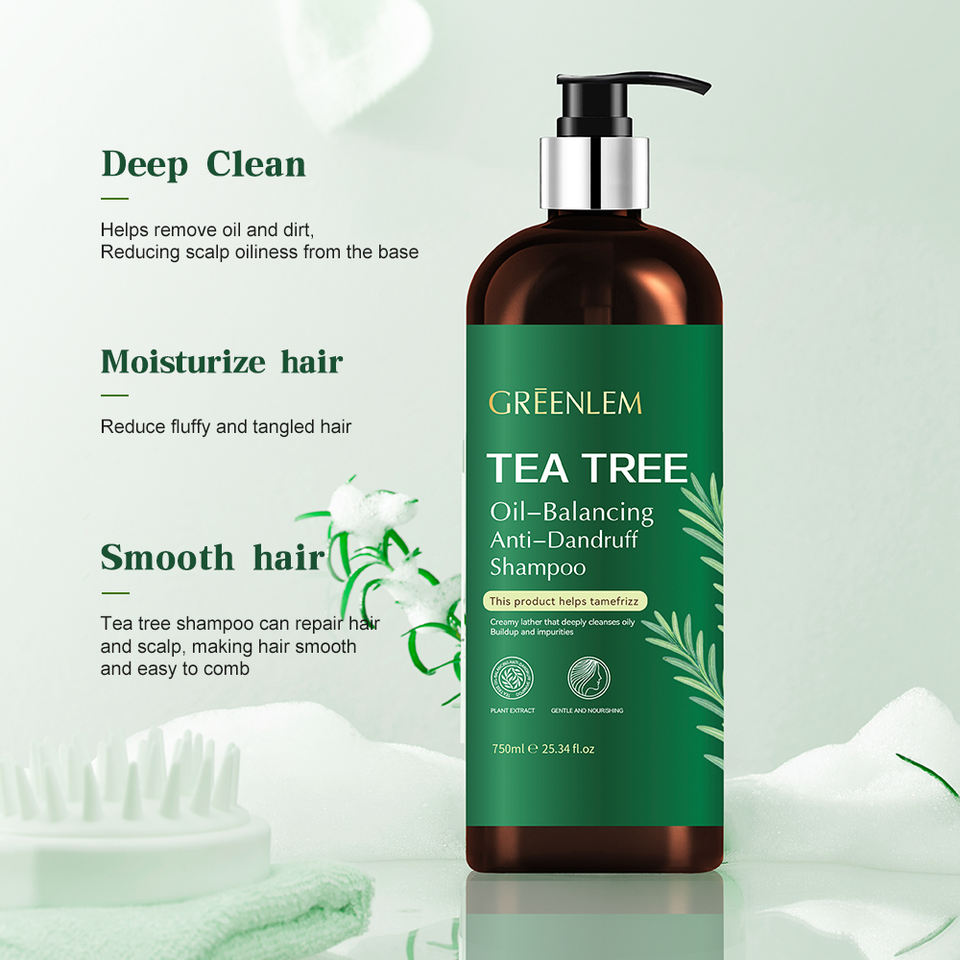 Champú Greenlem Refrescante con Aceite de Árbol de Té para Cabello Graso, Limpieza Profunda del Cuero Cabelludo, Reduce la Caspa y las Raíces Escamosas y con Picazón