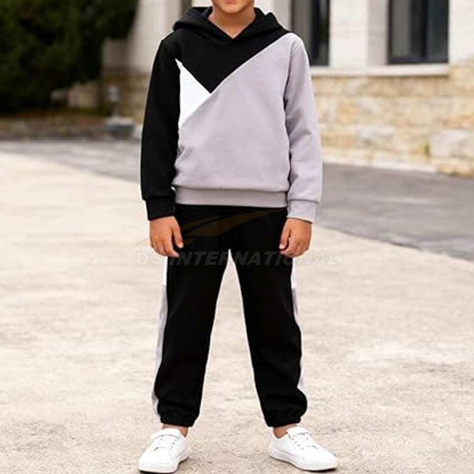Ropa gris PARA NIÑOS 2 uds Tween Boy Color Block Hoodie + Pants Little Boys Otoño Invierno Trajes Conjuntos de ropa para niños Conjuntos de dos piezas para niños pequeños