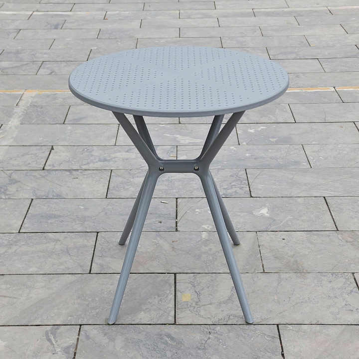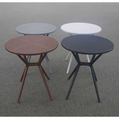 Mesa Redonda de Plástico Moldeado en Color Gris con Base en Forma de X - Una Silla Moderna y Compacta para Exteriores, Ideal para Jardín o Veladas al Aire Libre