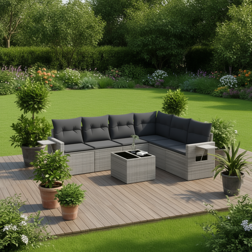 Conjunto de Sofás de Jardín Grises de Ratán, Muebles de Exterior para 6 Personas, Resistentes a la Intemperie, Diseño Contemporáneo