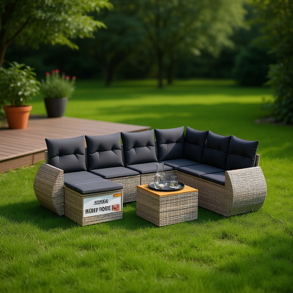 Conjunto de Sofás de Jardín Grises, Muebles de Ratán para Exteriores, Resistentes al Agua, Diseño Contemporáneo, Cojines de Espuma de Alta Densidad