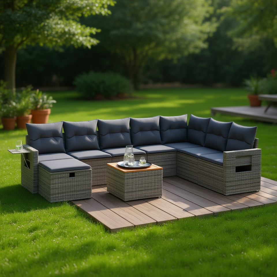 Conjunto de Sofás de Jardín Grises de Ratán, Muebles de Exterior para 6 Personas, Resistentes a la Intemperie, Diseño Contemporáneo