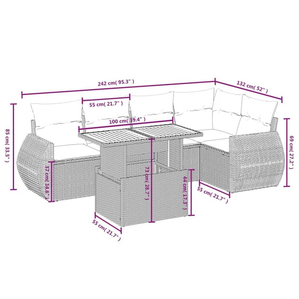 Conjunto de sofá de jardín gris
