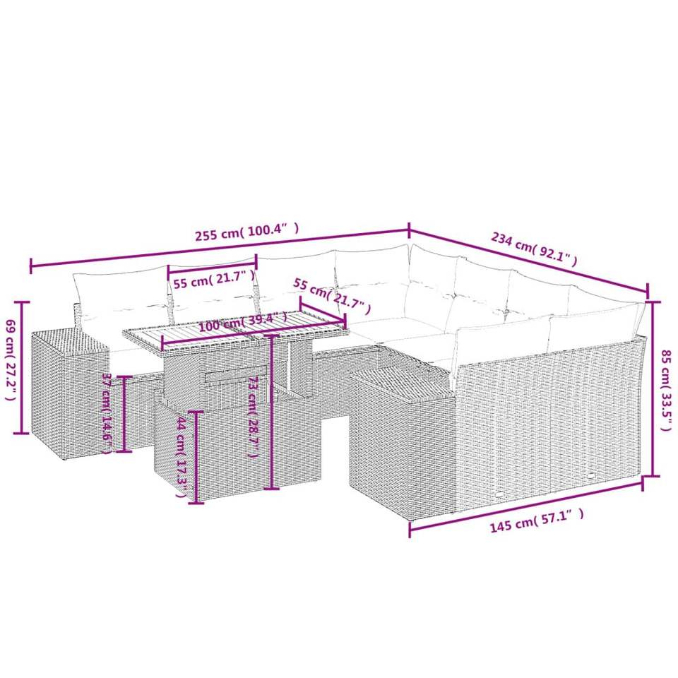 Conjunto de sofá de jardín gris