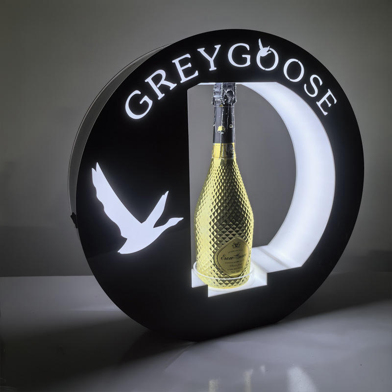 Expositor de licor acrílico Grey Goose con LED, redondo, con luz blanca para exhibir botellas de vodka