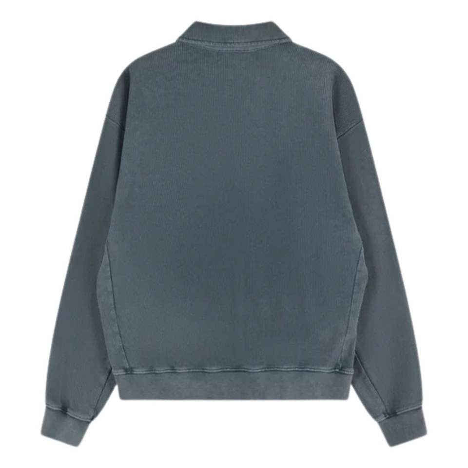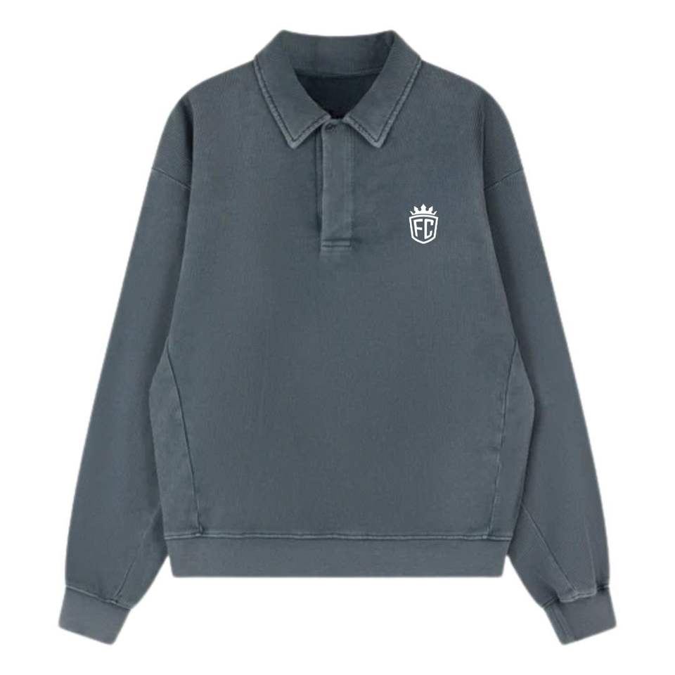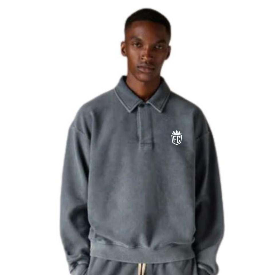 Sudadera Polo Gris de Punto Acanalado Lavado de Alto Gramaje, Manga Larga, Cuello con Solapa, Estilo Casual Masculino, Ajuste Cómodo, Calidad Premium