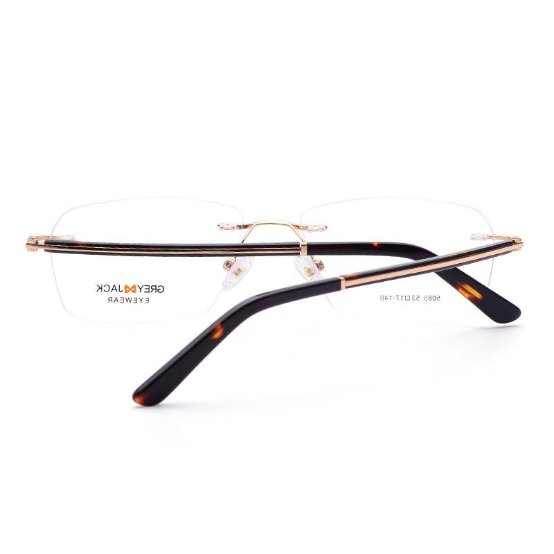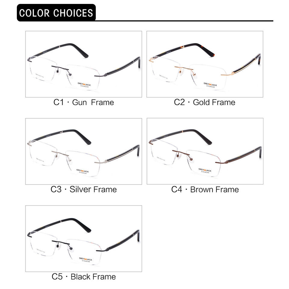 Gafas Ópticas Metálicas Sin Montura Grises Jack 5080, Montura Cuadrada Unisex, Gafas para Miopía, Ancho Medio, Puente Nasal Estándar