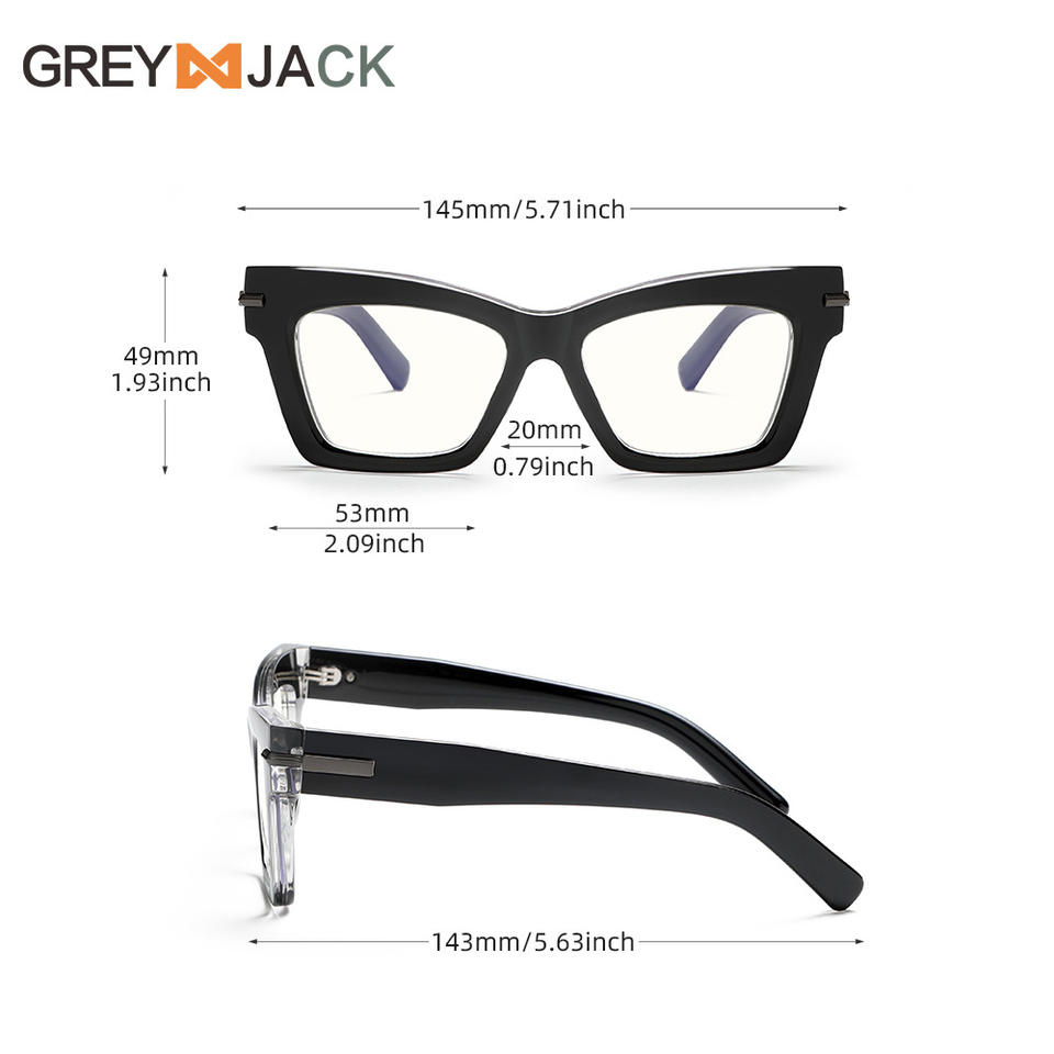 Gafas con Bloqueo de Luz Azul Grey Jack Square K048OP, Montura TR Extra Ancha, Gafas Ópticas para Mujer