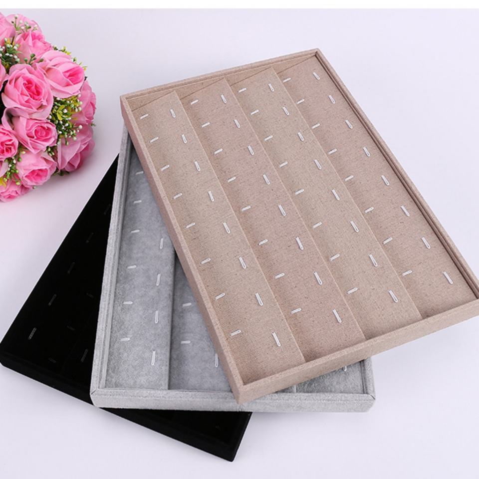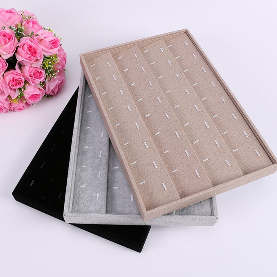 Caja de Exhibición de Joyería Gris para Anillos, Aretes, Pulseras, Collares u Otros Adornos, Organizador de Almacenamiento