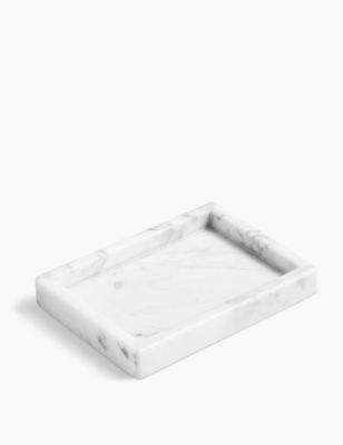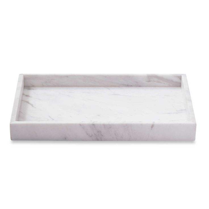 Bandeja rectangular de mármol gris, bandeja organizadora de almacenamiento de baño Premium para oficina, dormitorio y decoración del hogar elegante