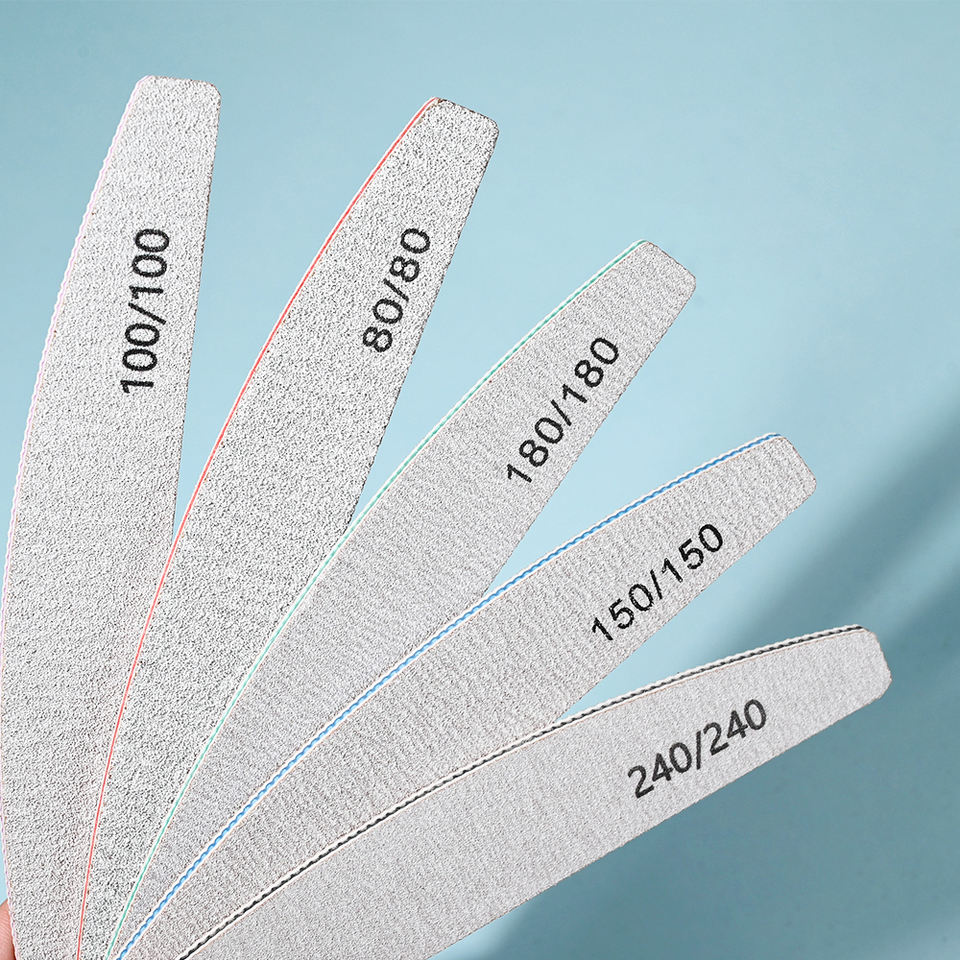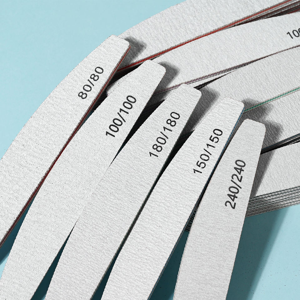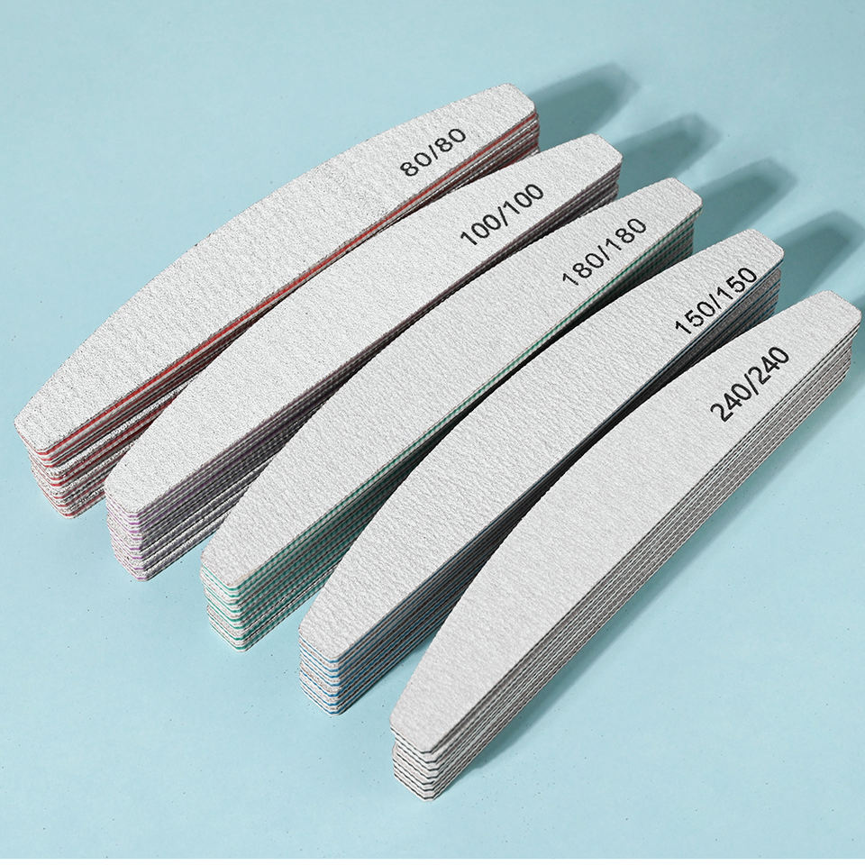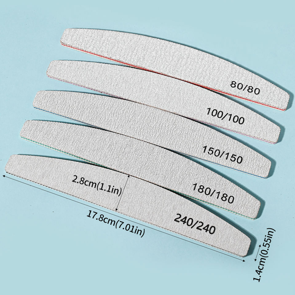 Set de Limas de Uñas Profesionales Grises Grano 80/100/150/180/240, Herramientas de Manicura con Pulidor y Removedor de Cutícula