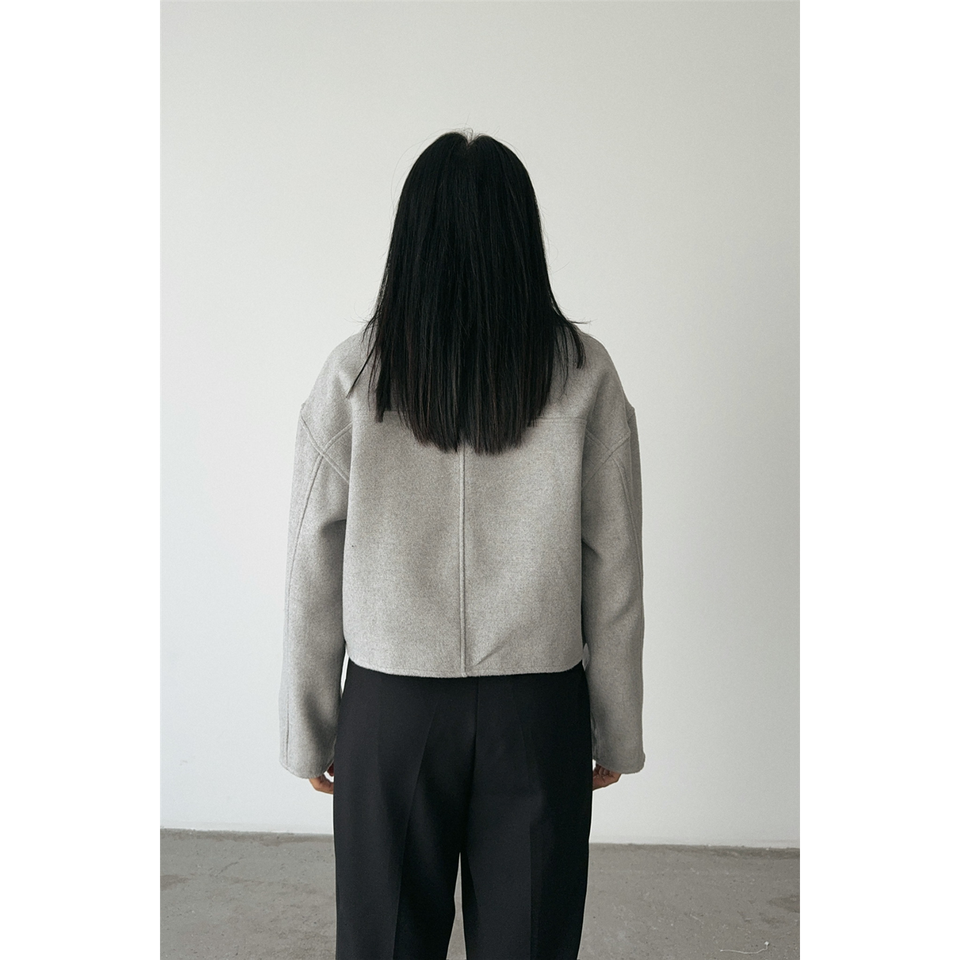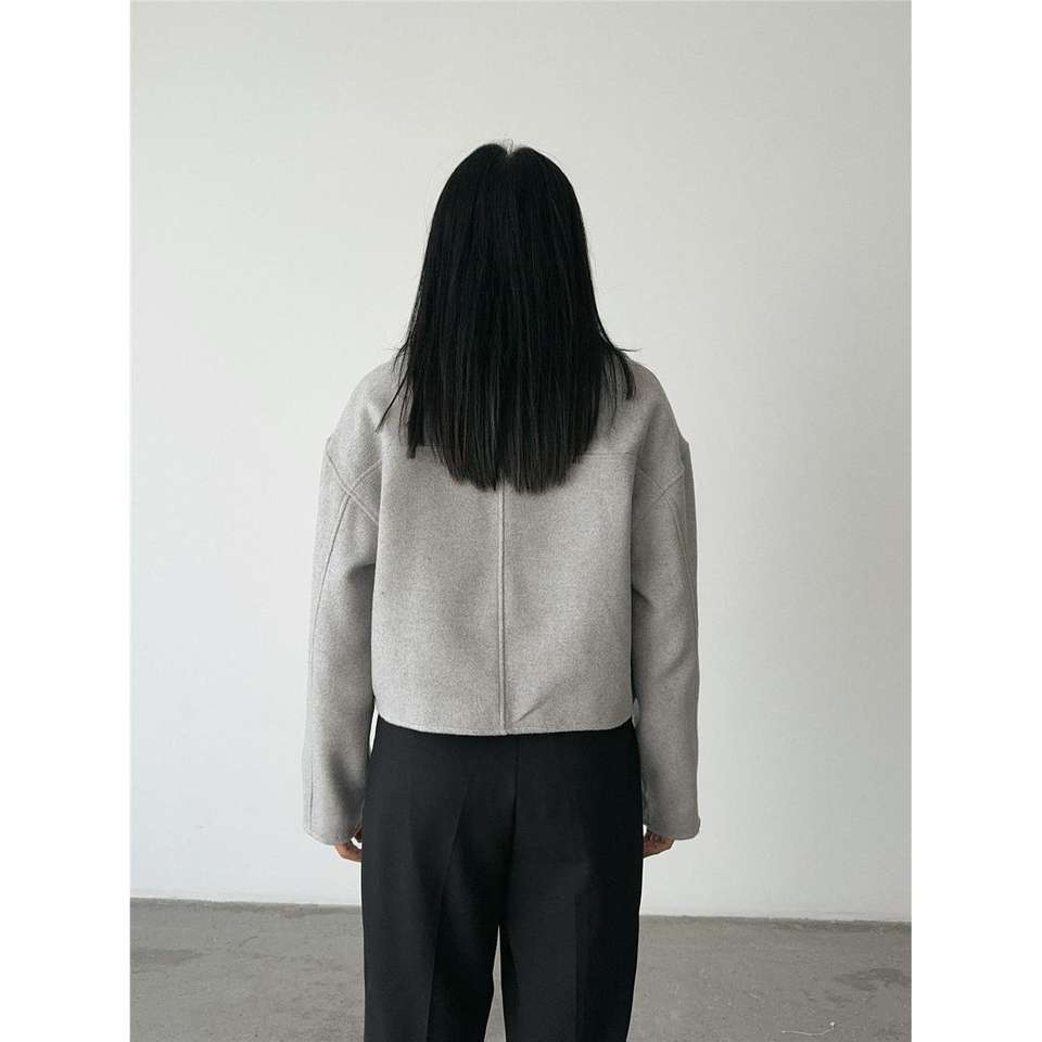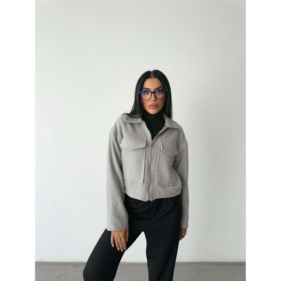 Chaqueta Corta de Cachemira Gris Extra Grande con Cierre Frontal, Capucha con Bordado, Estilo Bomber Varsity, Poliéster Sólido, Talla XL para Otoño y Primavera