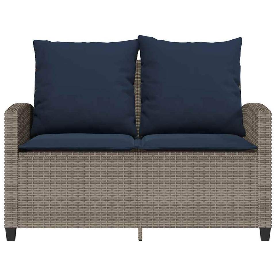 Sofá de Jardín de Ratán PE Gris, Acero con Recubrimiento en Polvo y Vidrio Templado, Elegante Conjunto de Jardín para Exteriores