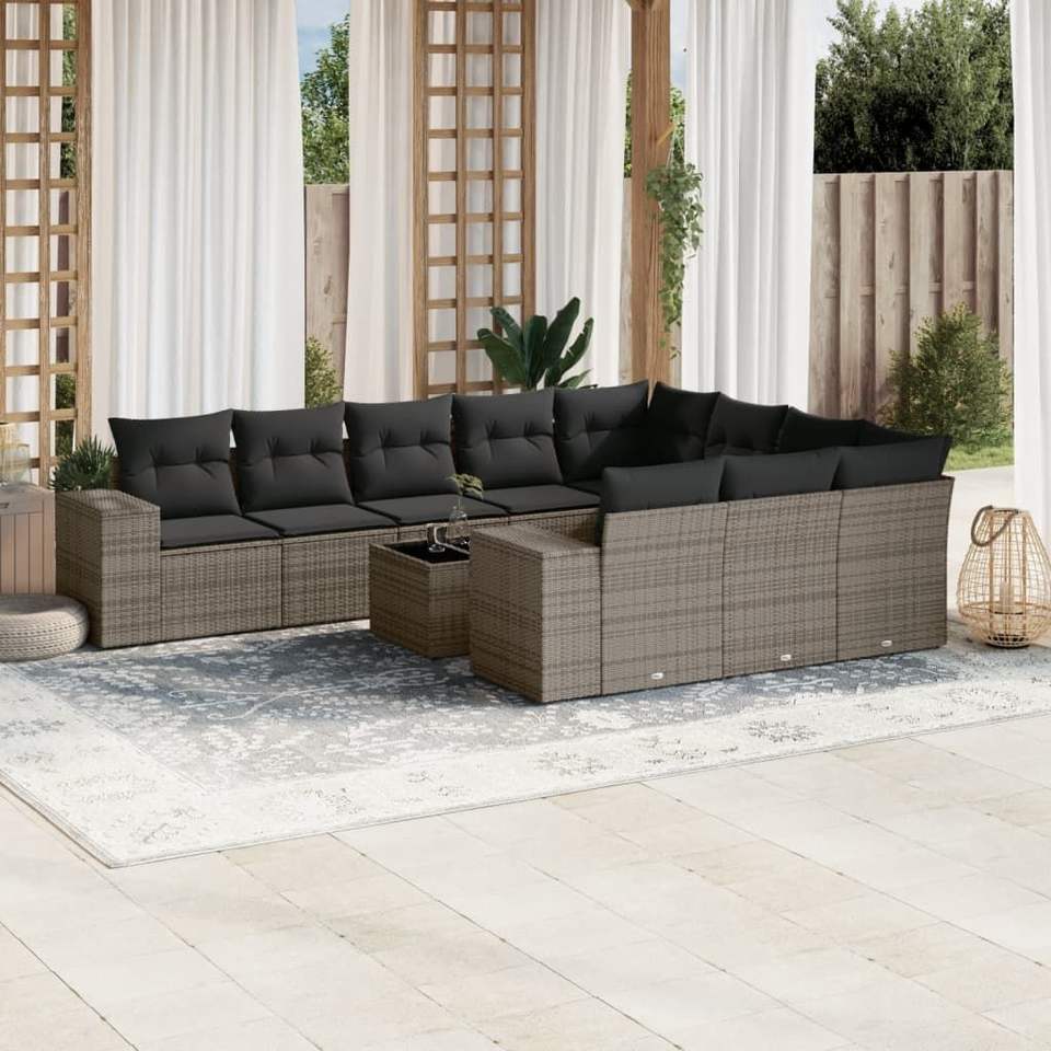 Conjunto de Sofá de Jardín de Ratán PE Gris con Acero con Recubrimiento en Polvo y Vidrio Templado, Muebles de Exterior Premium
