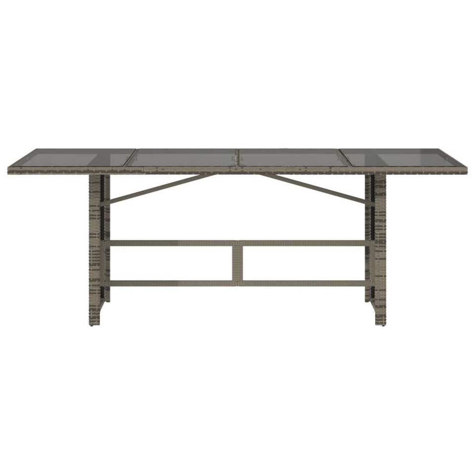 Mesa de Jardín de Ratán PE Gris con Acero con Recubrimiento en Polvo y Tapa de Vidrio Templado