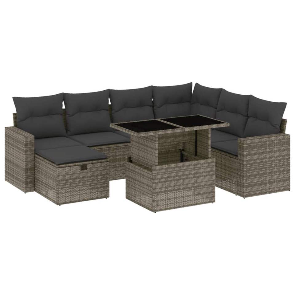 Conjunto de Sofás de Patio de Ratán PE Gris, Acero con Recubrimiento en Polvo y Tela para Jardín