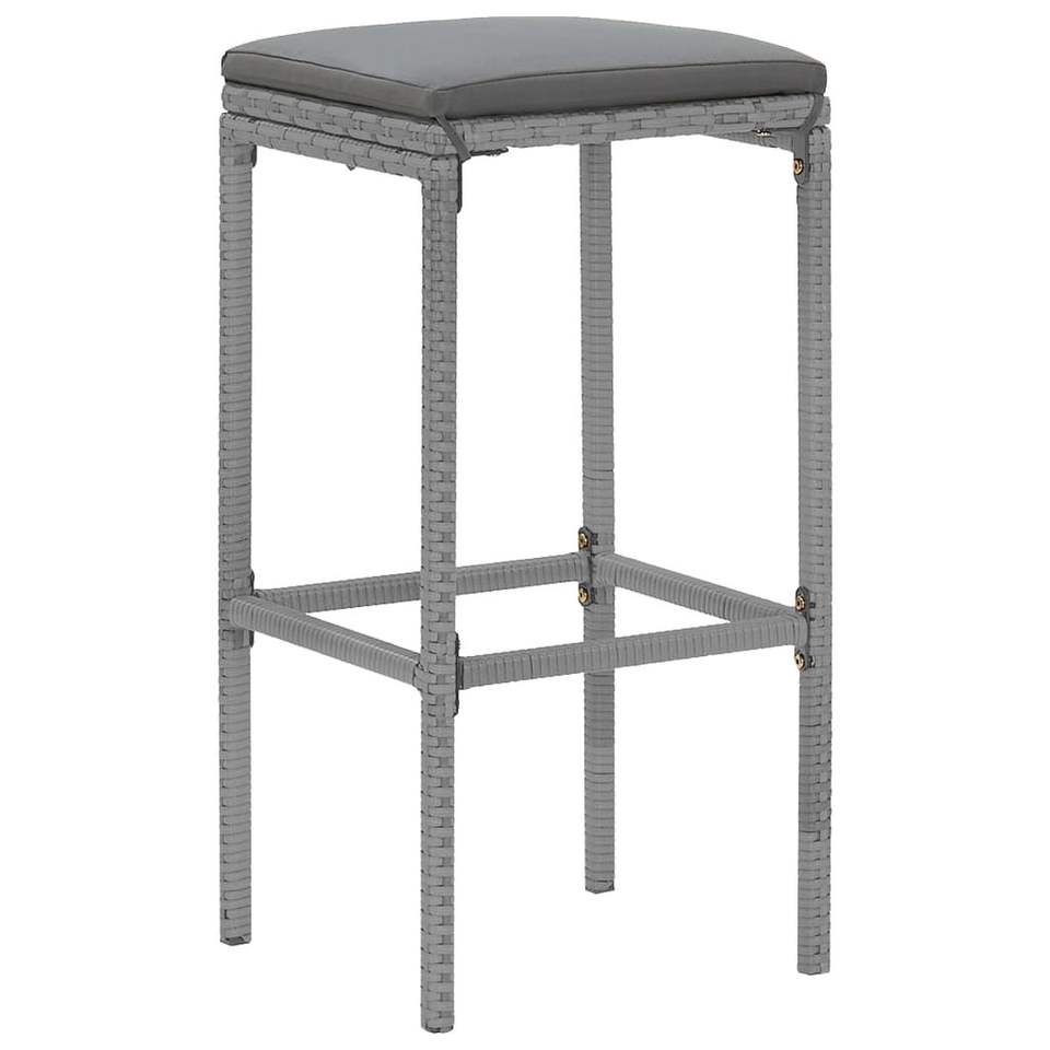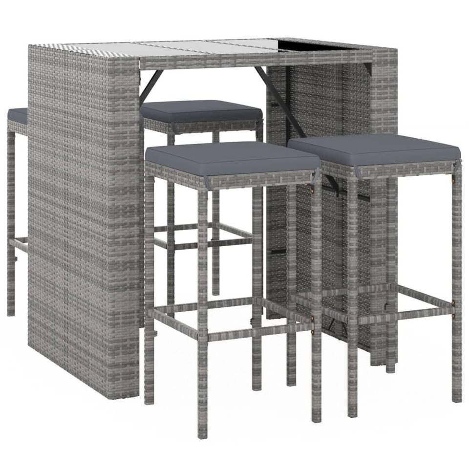Conjunto de Bar para Jardín de Ratán PE Gris y Acero con Recubrimiento en Polvo, con Vidrio Templado, Muebles de Exterior Premium