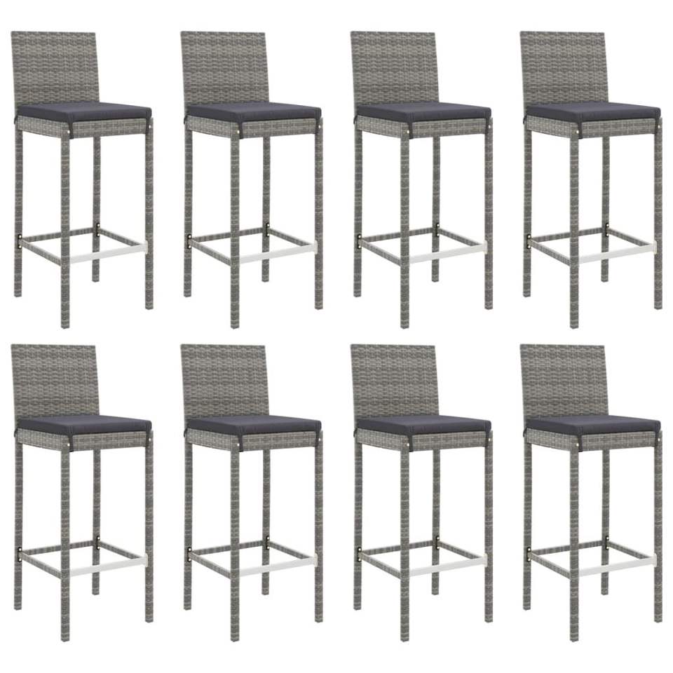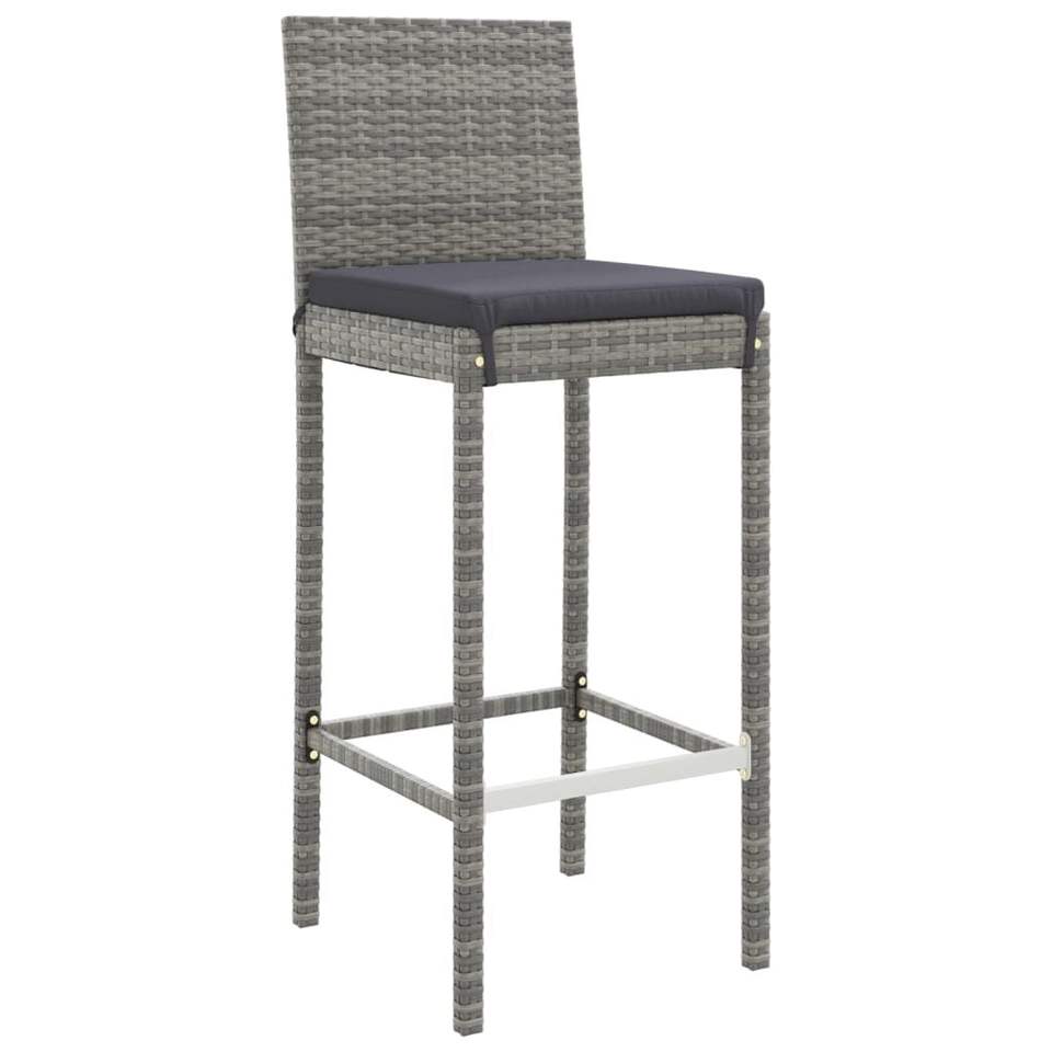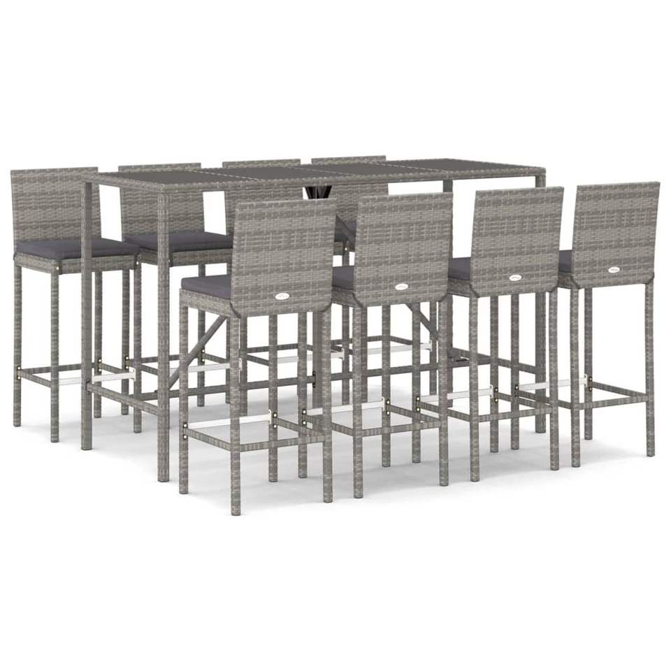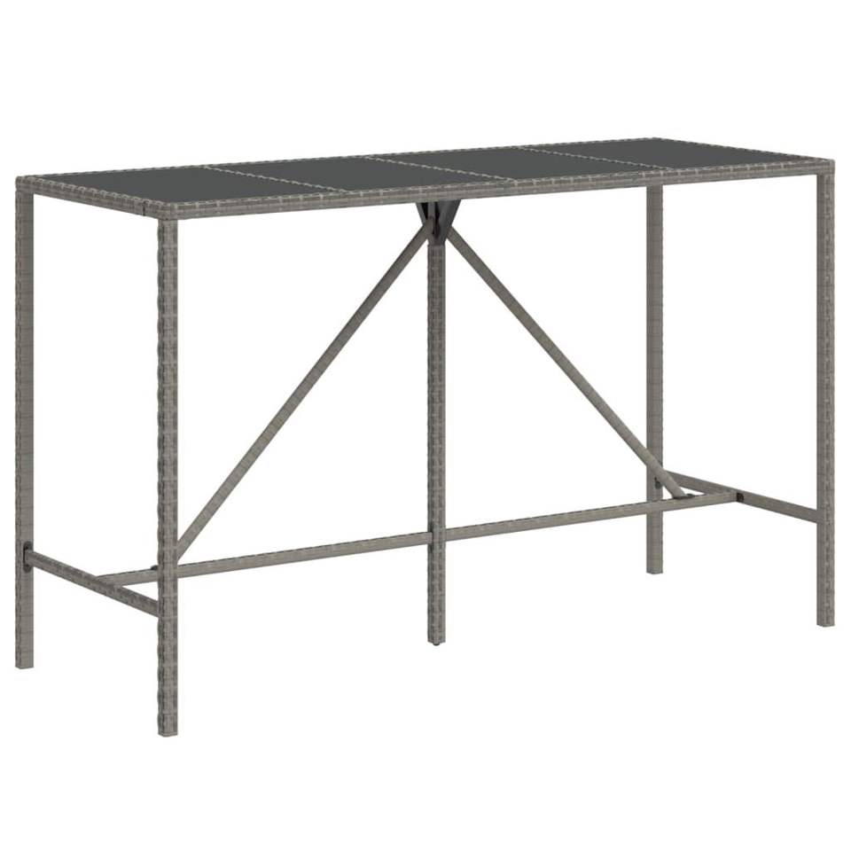 Conjunto de Bar para Jardín de Ratán PE Gris y Acero con Recubrimiento en Polvo, con Vidrio Templado, Muebles de Bar Duraderos para Exteriores