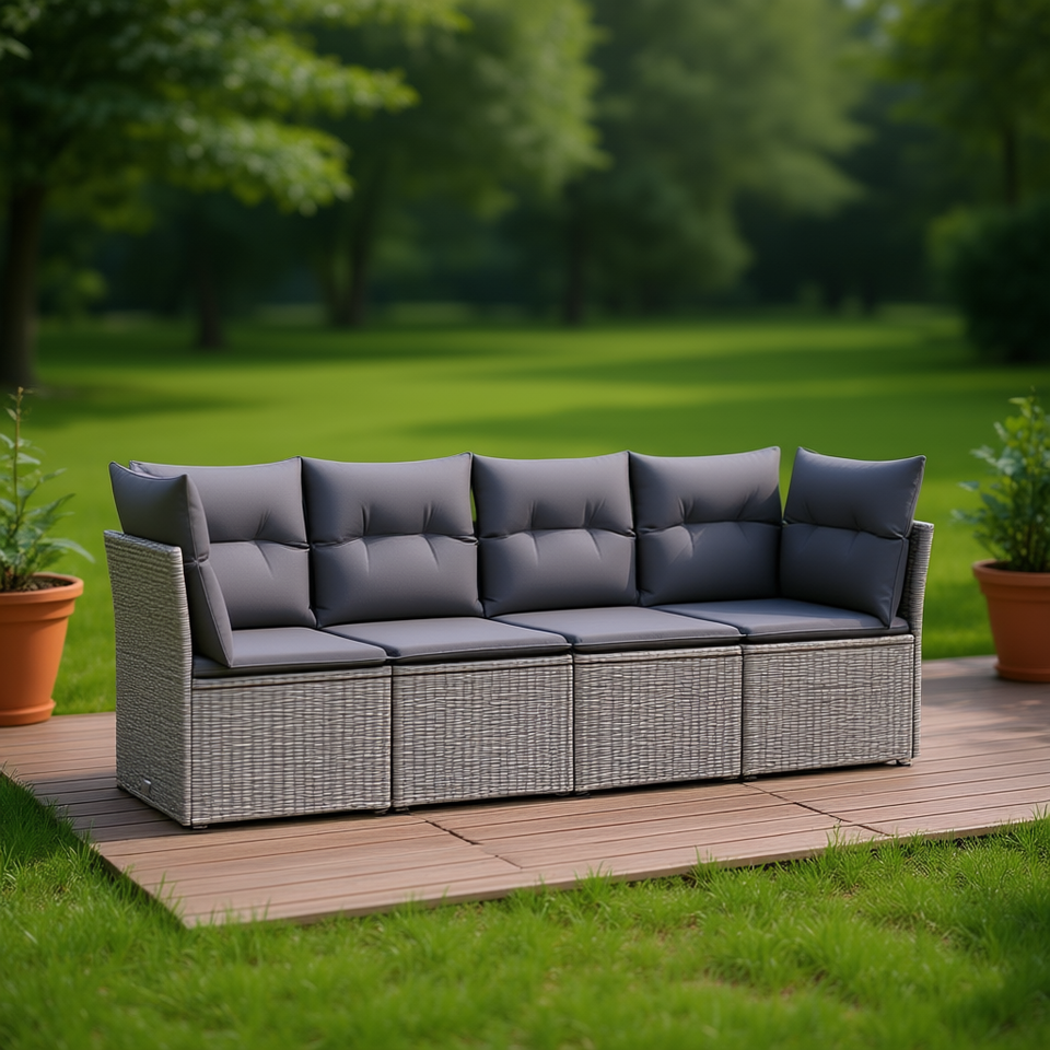 Conjunto de Sofá Grande para Jardín de Ratán PE Gris con Fundas Extraíbles
