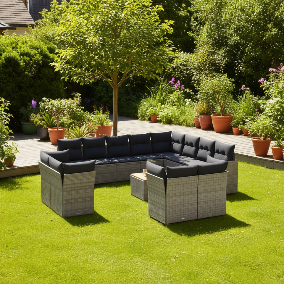Conjunto de Sofás de Jardín de Ratán Gris, 10+ Plazas, Muebles de Exterior, Diseño Contemporáneo, Reposabrazos Ajustables