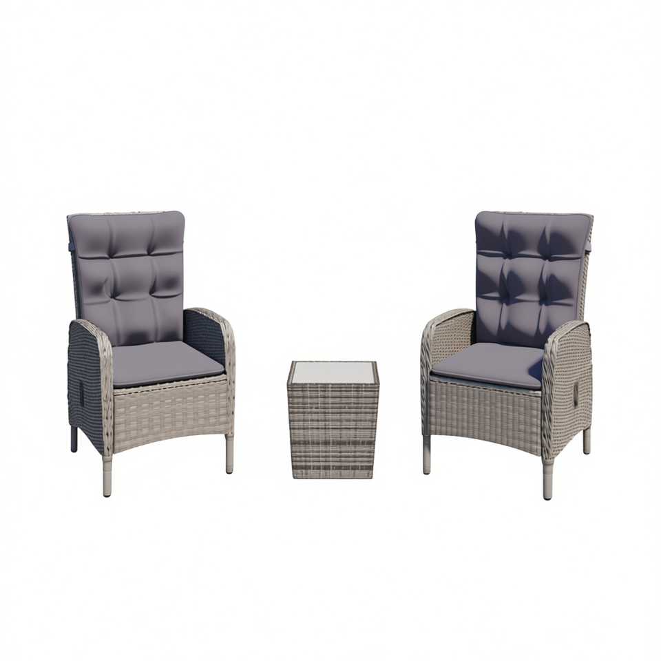Conjunto de Bistro de Ratán Sintético Gris con Fundas Extraíbles, Muebles de Patio para 2 Personas, Diseño Contemporáneo