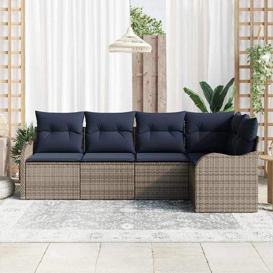 Conjunto de Sofá de Jardín de Ratán Sintético Gris, 5 Plazas, Resistente a la Intemperie, Muebles de Exterior de Diseño Contemporáneo