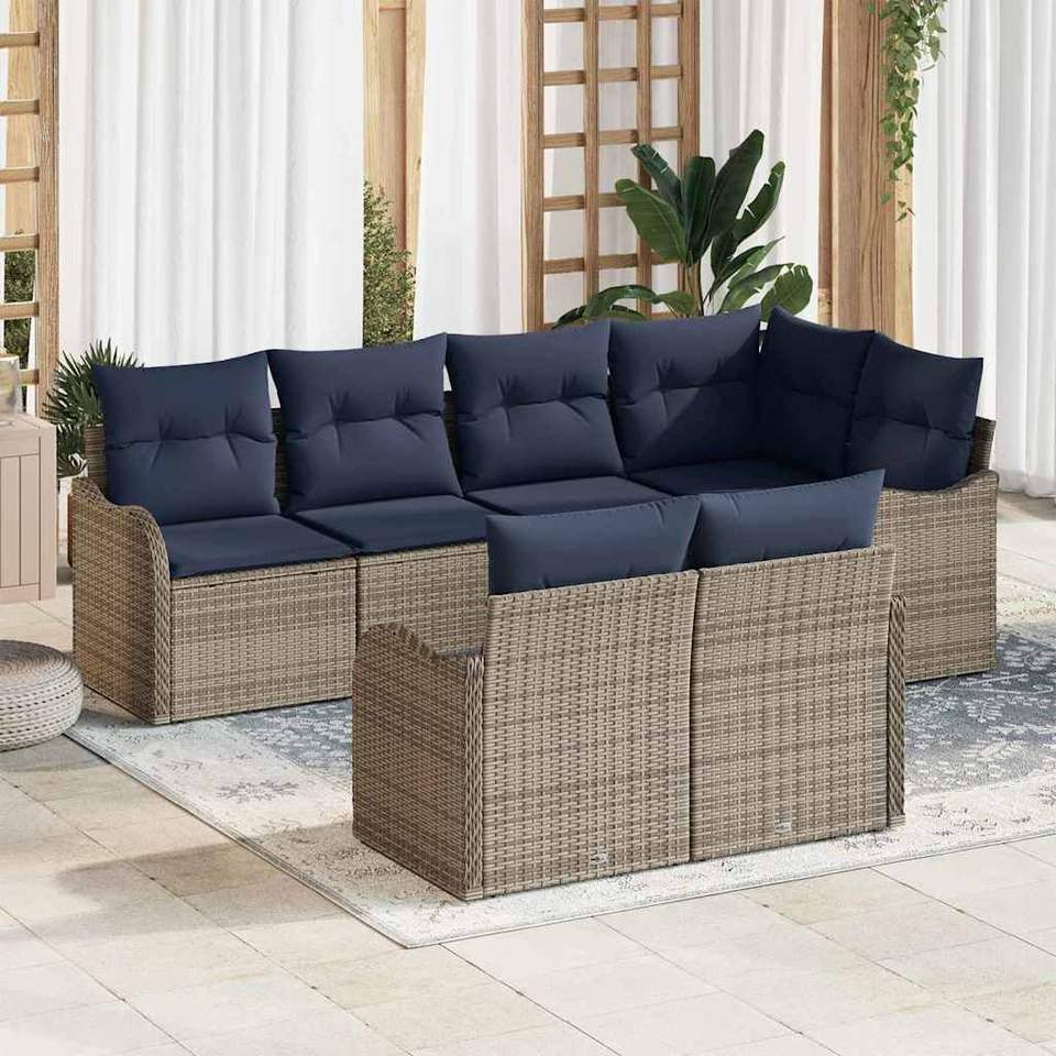 Conjunto de Sofá de Jardín de Ratán Sintético Gris, 6 Plazas, Muebles de Exterior Resistentes a la Intemperie, Diseño Contemporáneo