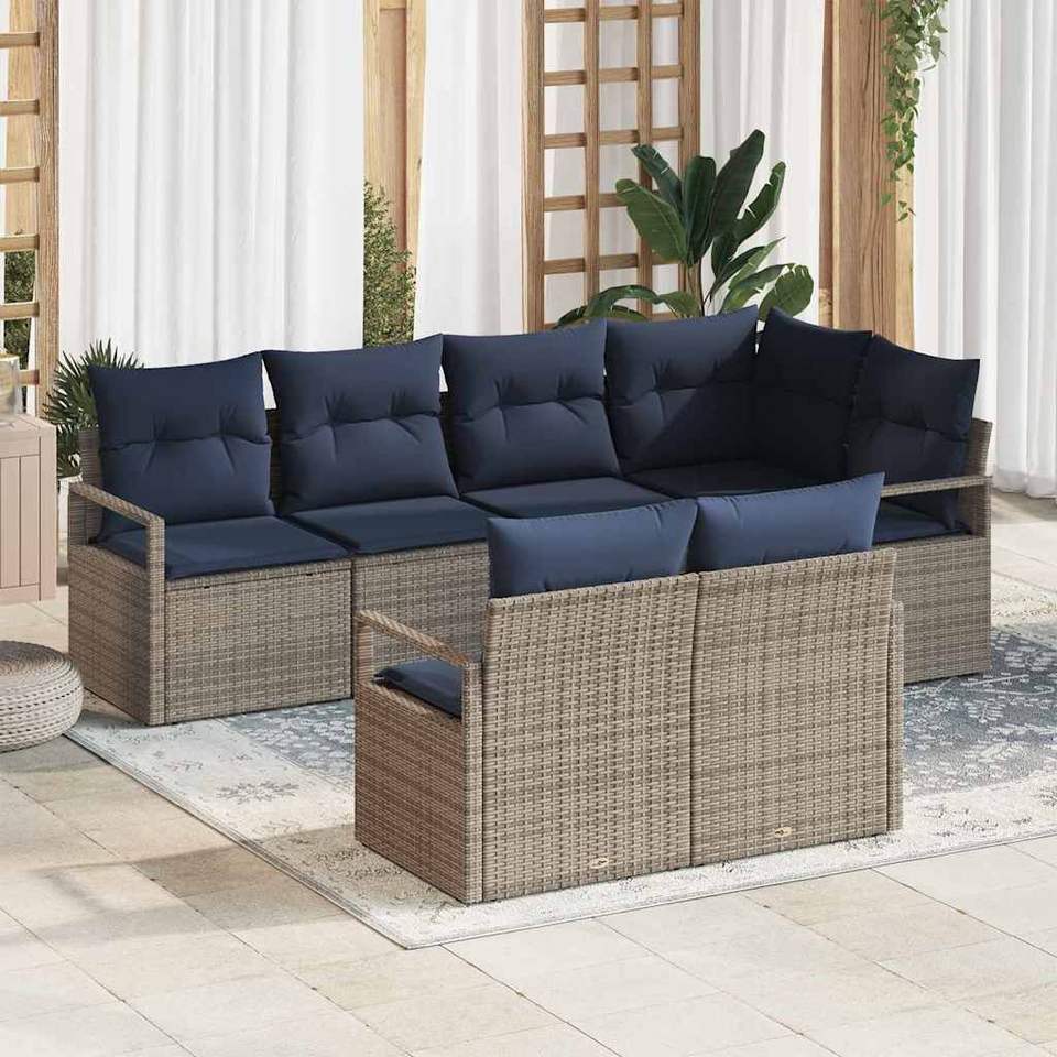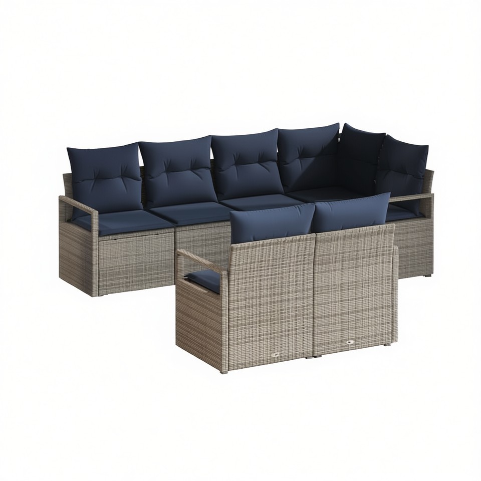 Conjunto de Sofás de Jardín de Ratán Sintético Gris, 7 Piezas, Muebles de Exterior Resistentes a la Intemperie, Diseño Contemporáneo
