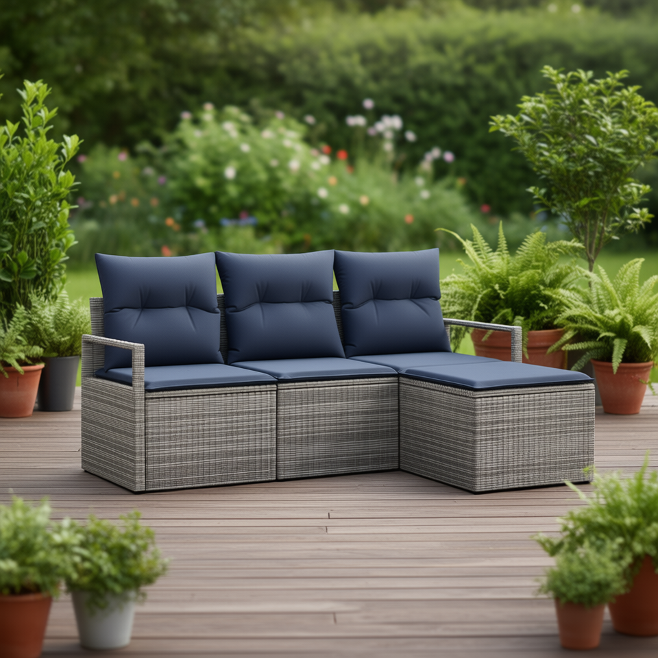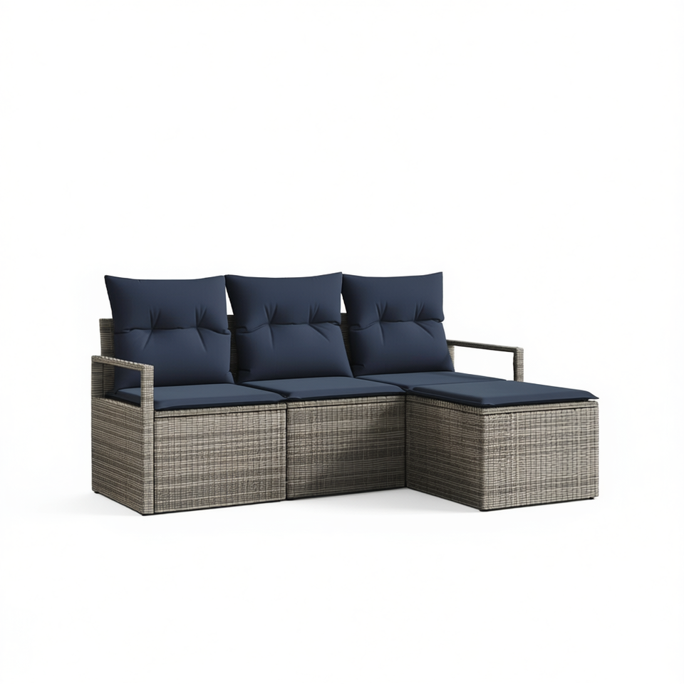 Juego de Sofás de Ratán Sintético Gris de 4 Piezas, Muebles de Patio para Exteriores, Estilo Moderno y Contemporáneo, Asientos para 4 Personas