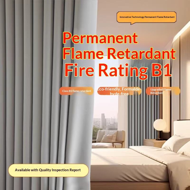 Cortina Ignífuga de Poliéster Gris Clase B1 con Alto Nivel de Sombreado para Hoteles, Salas de Ordenadores, Cibercafés, Dormitorios Escolares