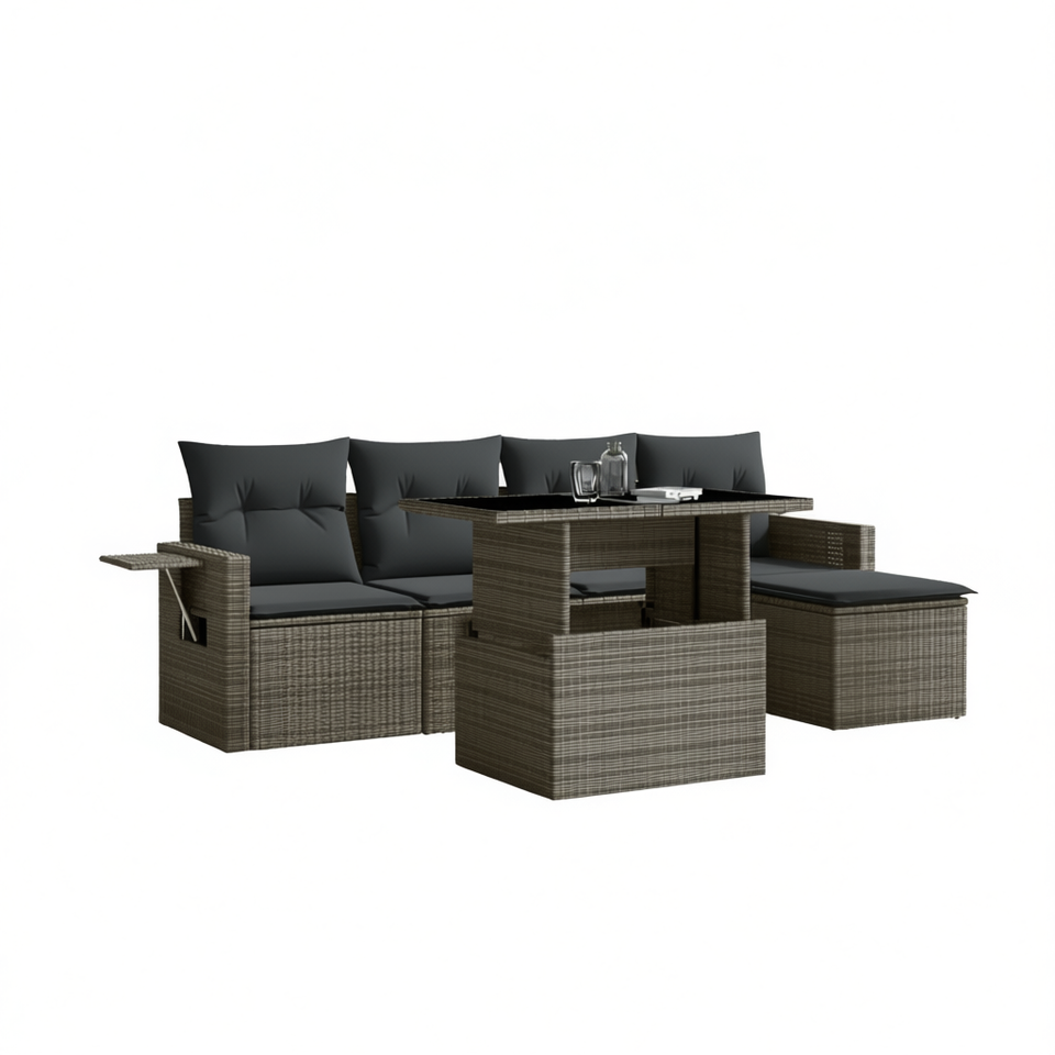 Conjunto de Sofá de Jardín de Ratán Gris, 4 Plazas, Muebles de Exterior Resistentes a la Intemperie, Diseño Contemporáneo