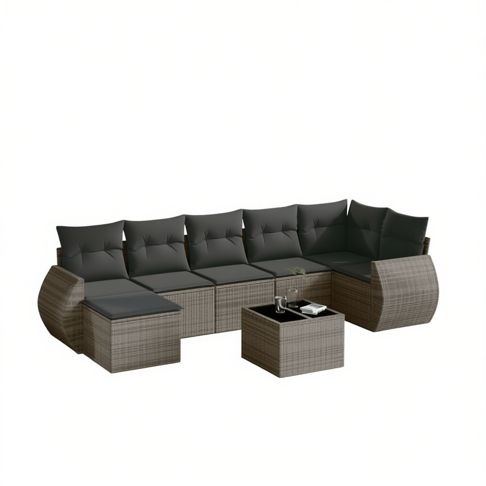 Conjunto de Sofás de Jardín de Mimbre Gris para 6 Personas, Muebles de Mimbre Contemporáneos para Exteriores